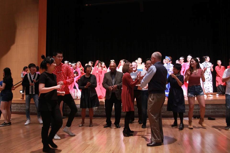 The closing dance was surprisingly a traditional American line dance. At the end of the show, all the dancers came out and invited the audience to the front to dance together. President Smart and his wife Gail’s “solo dance” ended the successful dance show.