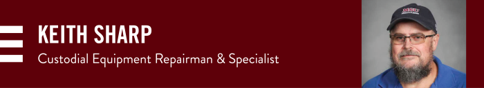 This month we want to recognize Keith Sharp! Keith is the Custodial Equipment Repairman and Specialist, and has worked in various positions for MSU for 37 years. Keith will be retiring this month, and we want to thank him for his many years of service and devotion to student success at Residence Life. We hope you enjoy your well earned retirement!